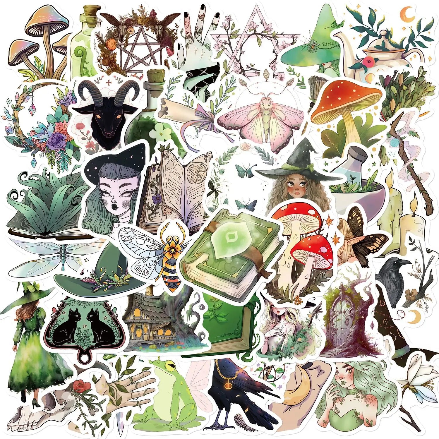 🍄🌿 50-pack Green Witch & Skogsmagi – Drömska Klistermärken i Vattentålig Vinyl