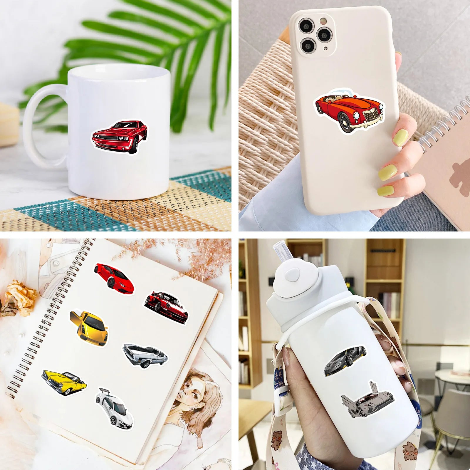 Starta motorn för maxad stil! Det här 50-packet klistermärken samlar allt från blixtrande supercars och muskelbilar till driftbilar, rally, pickups och cabbar – i starka färger och snygga linjer. Klistra på laptop, mobilskal, hjälm, skateboard, vattenflaska eller verktygslådan och låt garagestilen rulla vidare.