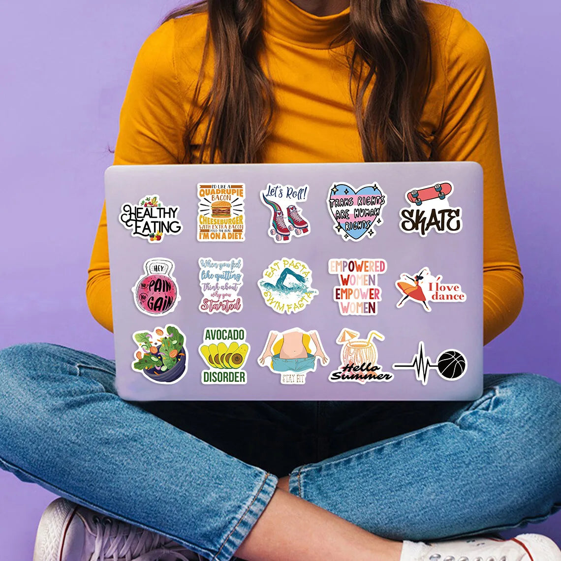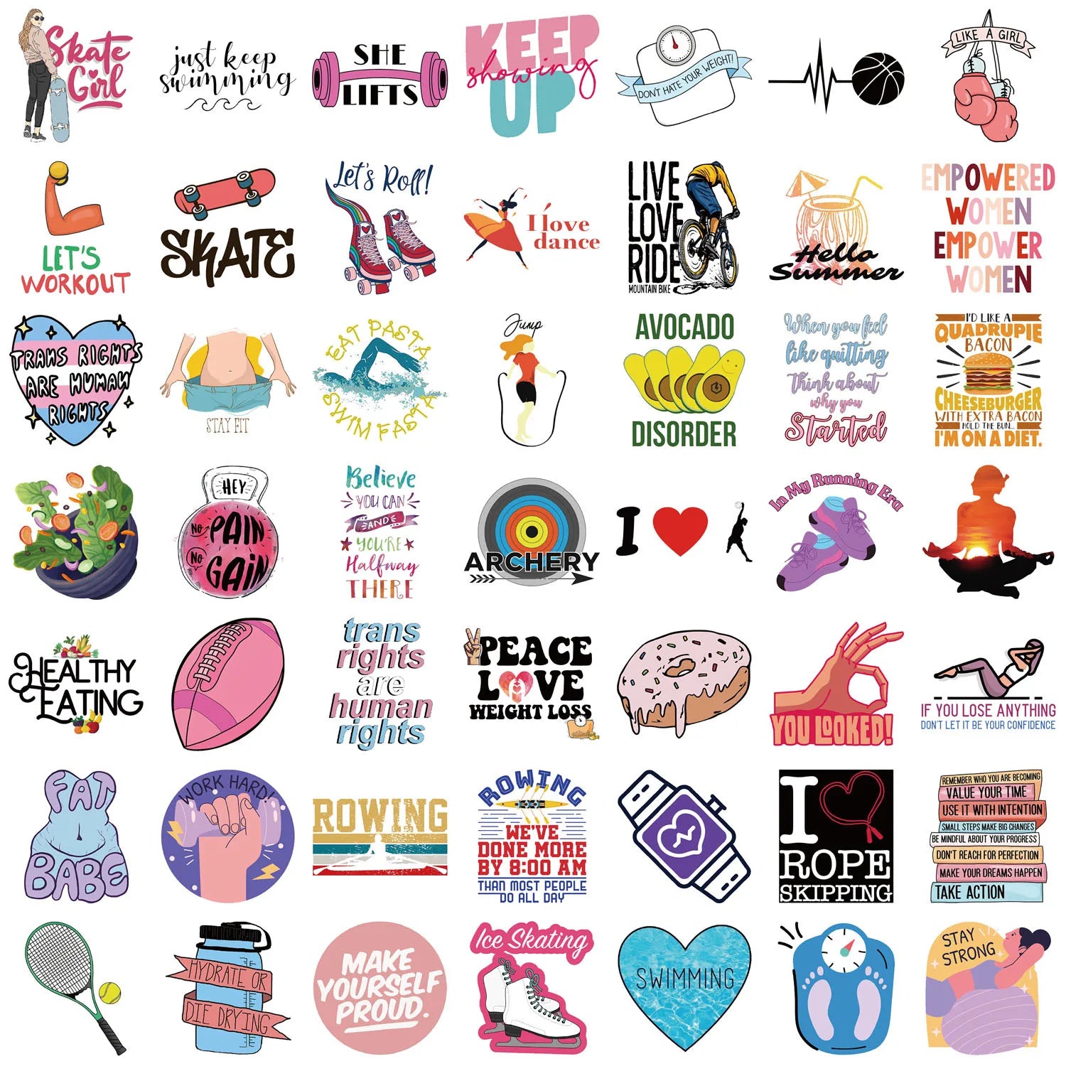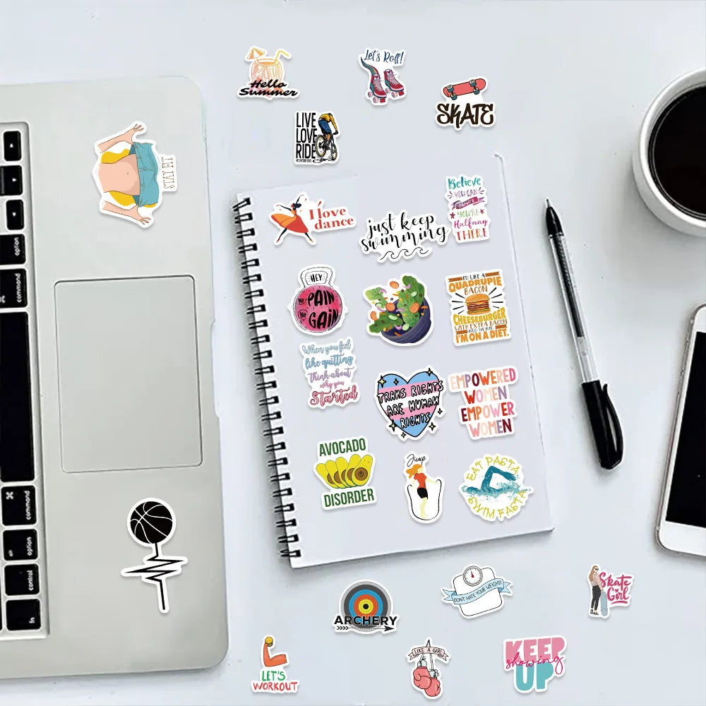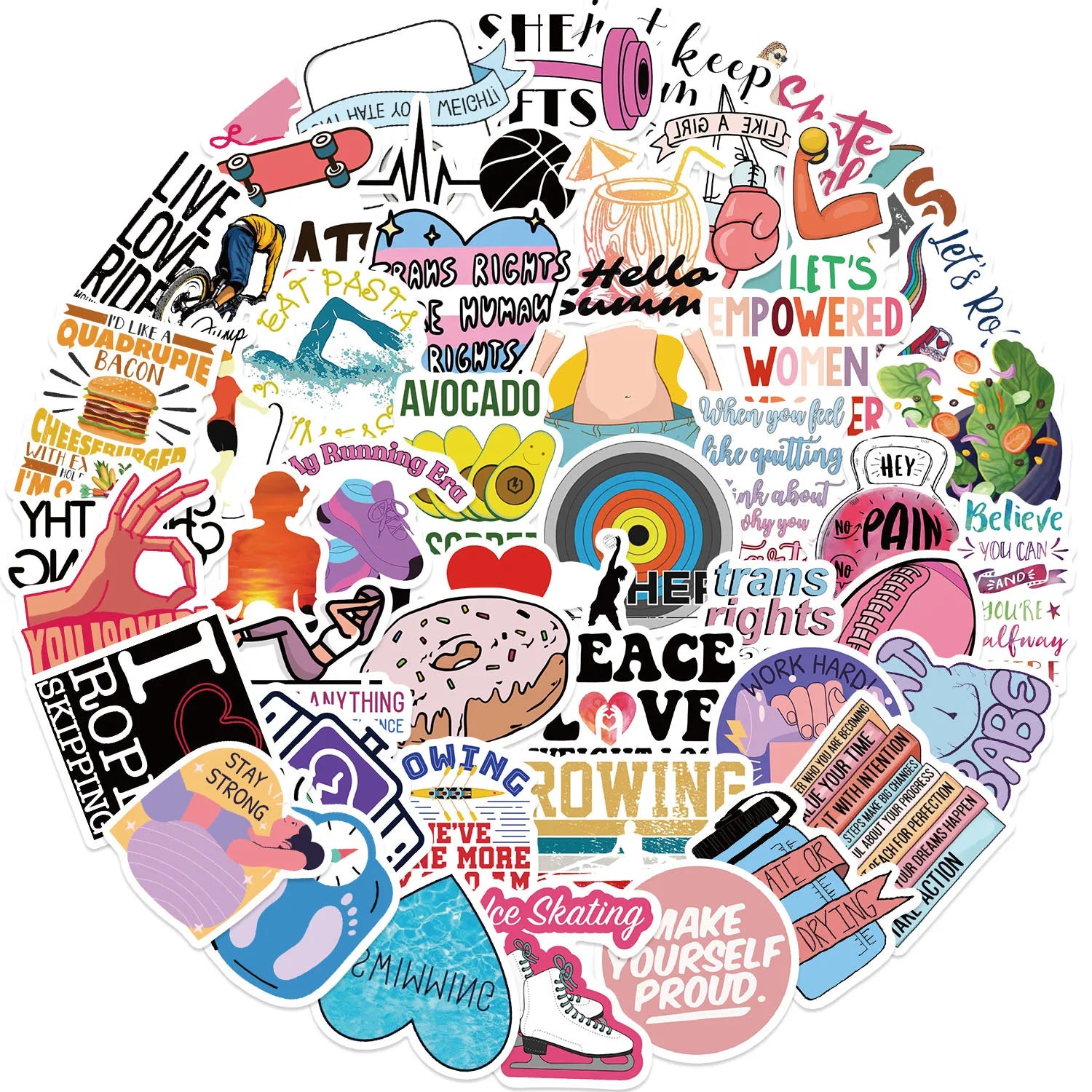 Bygg din egen motivationsvägg! Det här 50-packet mixar sport, träning och feel-good-budskap: löpning, skateboard, gym, smoothies och inkluderande statements. Klistra på laptop, vattenflaska, gymkort, kalender och skolpärmar – perfekt när du vill peppa dig själv och ditt team.