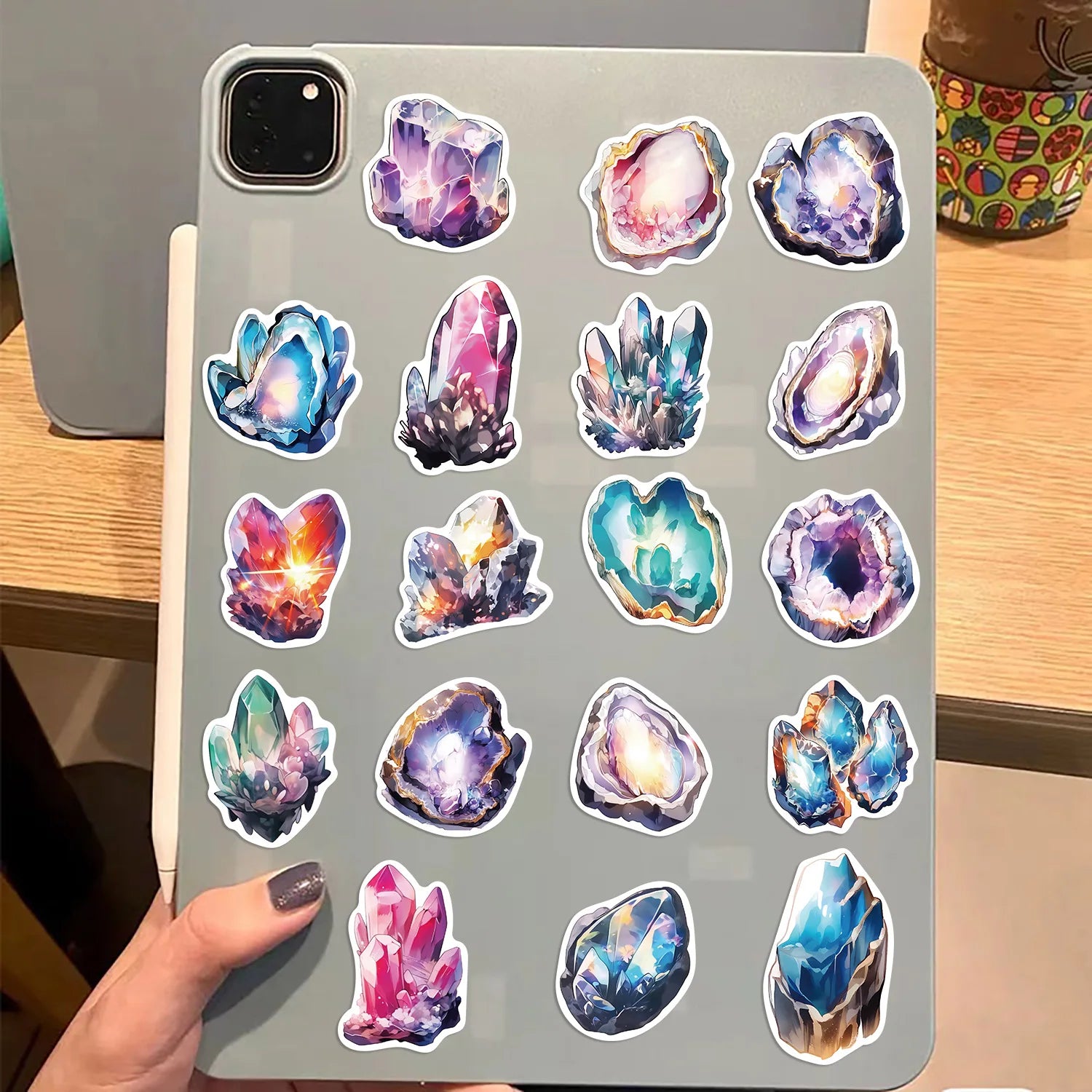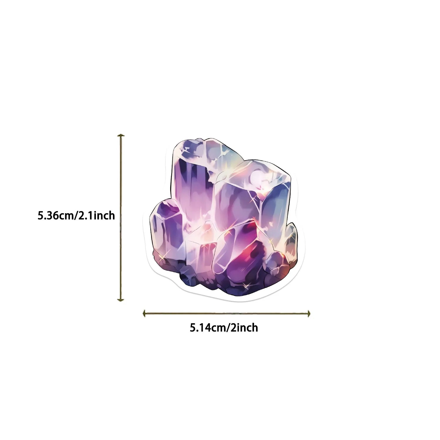 Låt dina prylar glimma som en nyfunnen geod! Det här 50-packet rymmer målade kristaller i regnbågsskimmer – ametist, bergskristall, rosenkvarts, akvamarin och fler drömmiga formationer. Perfekt för laptops, mobilskal, vattenflaskor, bullet journal och scrapbooking när du vill ge vardagen lite mineralmagi.