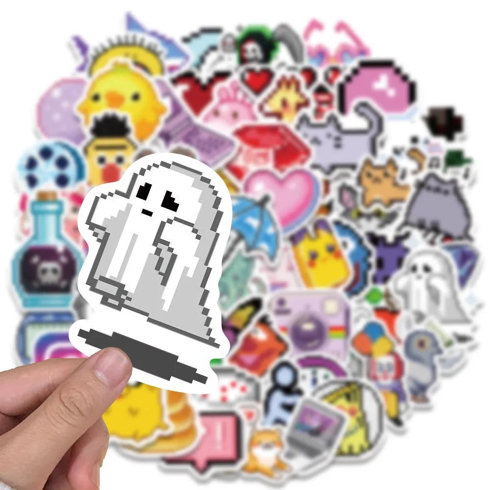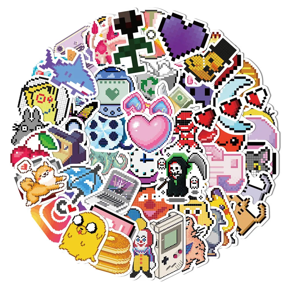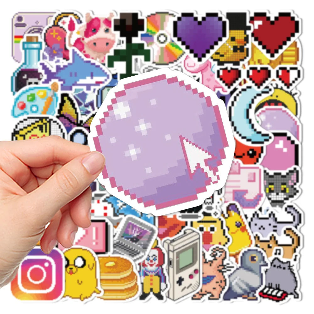 🕹️✨ 64-pack Retro Pixel Party – 8-bit Klistermärken i Vattentålig Vinyl