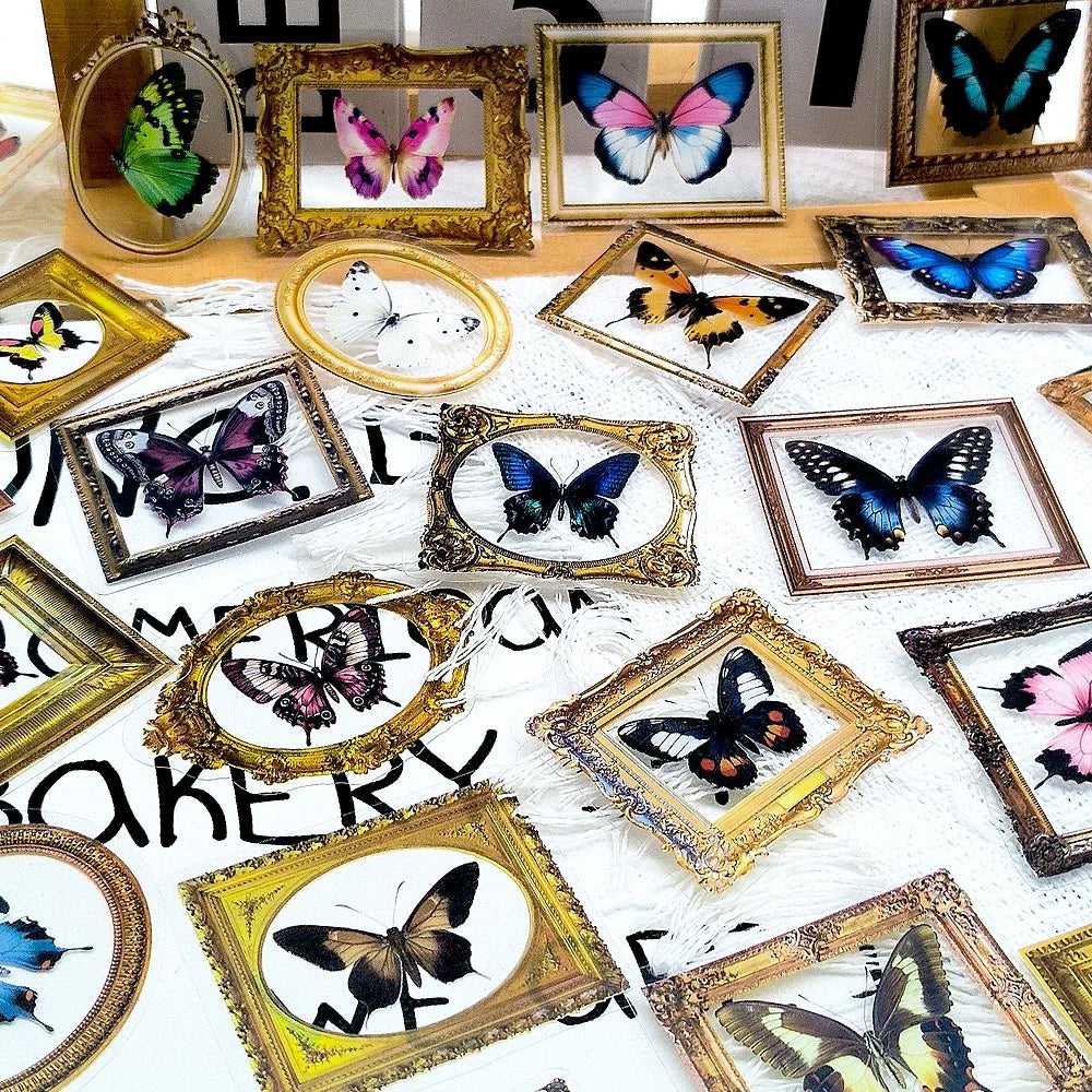 🦋🏛️ 52-pack Fjärilsgalleri – Vintage Ramar & Vackra Vingslag i Vattentålig Vinyl